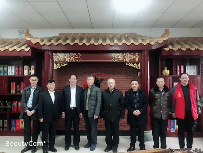 白酒專家胡永松教授(右二),瀘州市酒業(yè)促進(jìn)局局長任小波(左二)在公司董事長魏云飛(右一)陪同下指導(dǎo)公司工作。